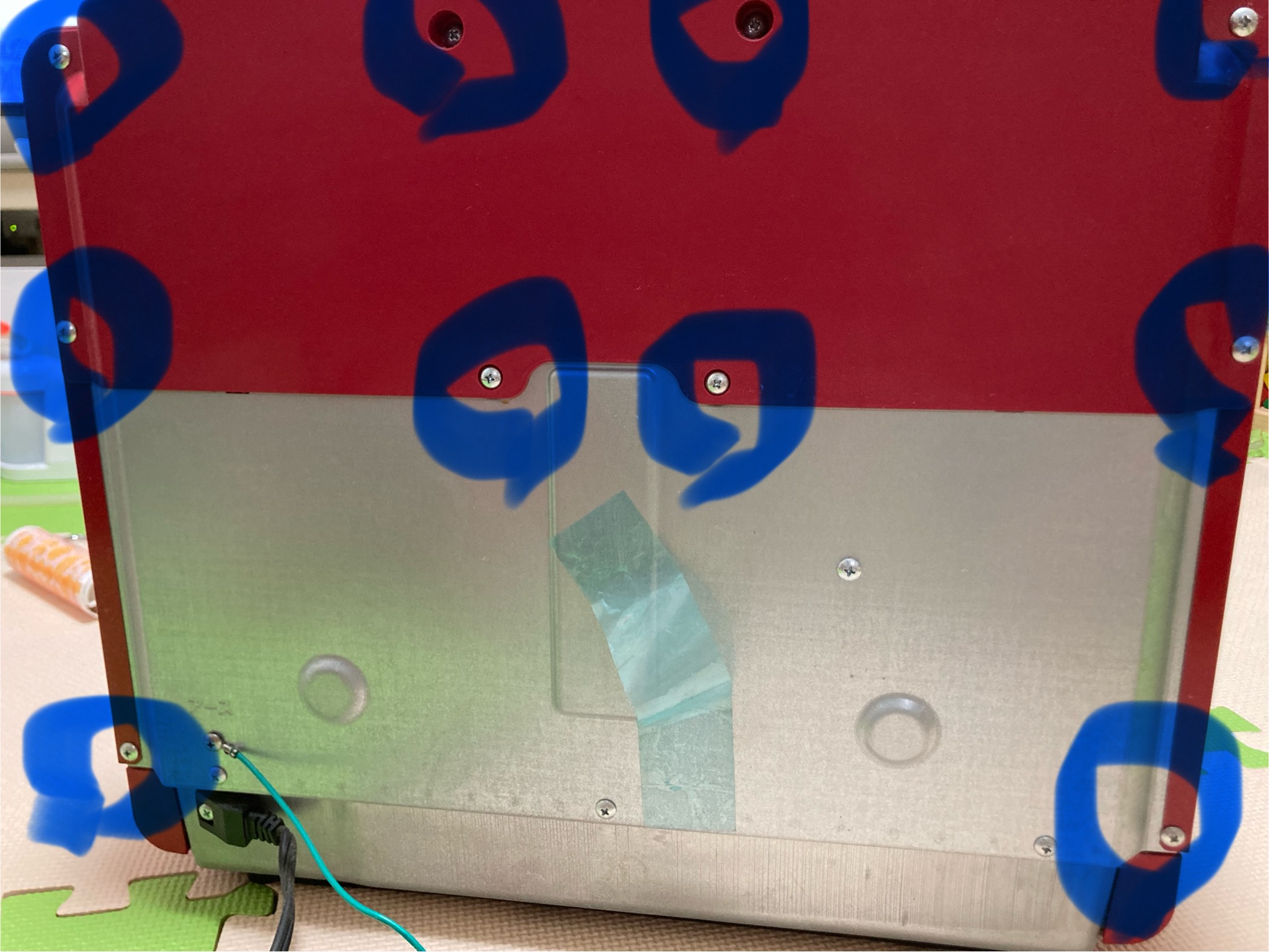 ③側面のビスを1個*両面外し、赤のカバーを外します。